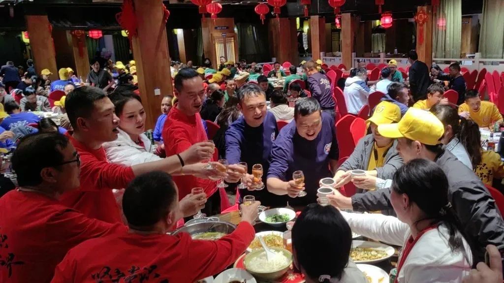 既然出來玩了,那么美食大餐必須安排!兩天一夜的行程期間大餐不斷,餐廳內人頭攢動,氣氛熱烈。第一天午餐各位同事圍坐在大圓桌旁,有的拍照錄制,有的討論行程安排。服務員及時為每位提供開酒水,茶歇時更是細致入微。晚餐則在酒店的宴會廳舉行,裝飾高雅,音樂溫馨,大家享受湖州德清的特色菜。